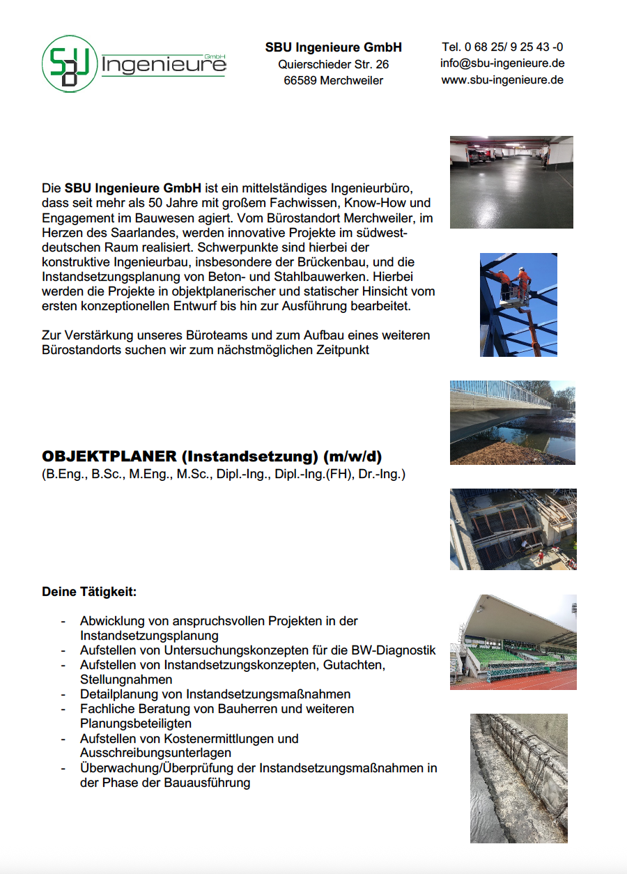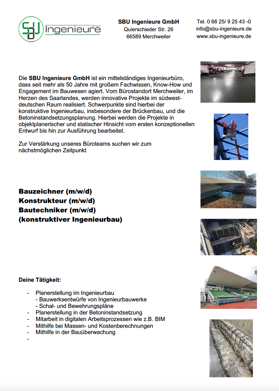 Senden Sie uns Ihre Bewerbungsunterlagen gerne als Mail info@sbu-ingenieure.de